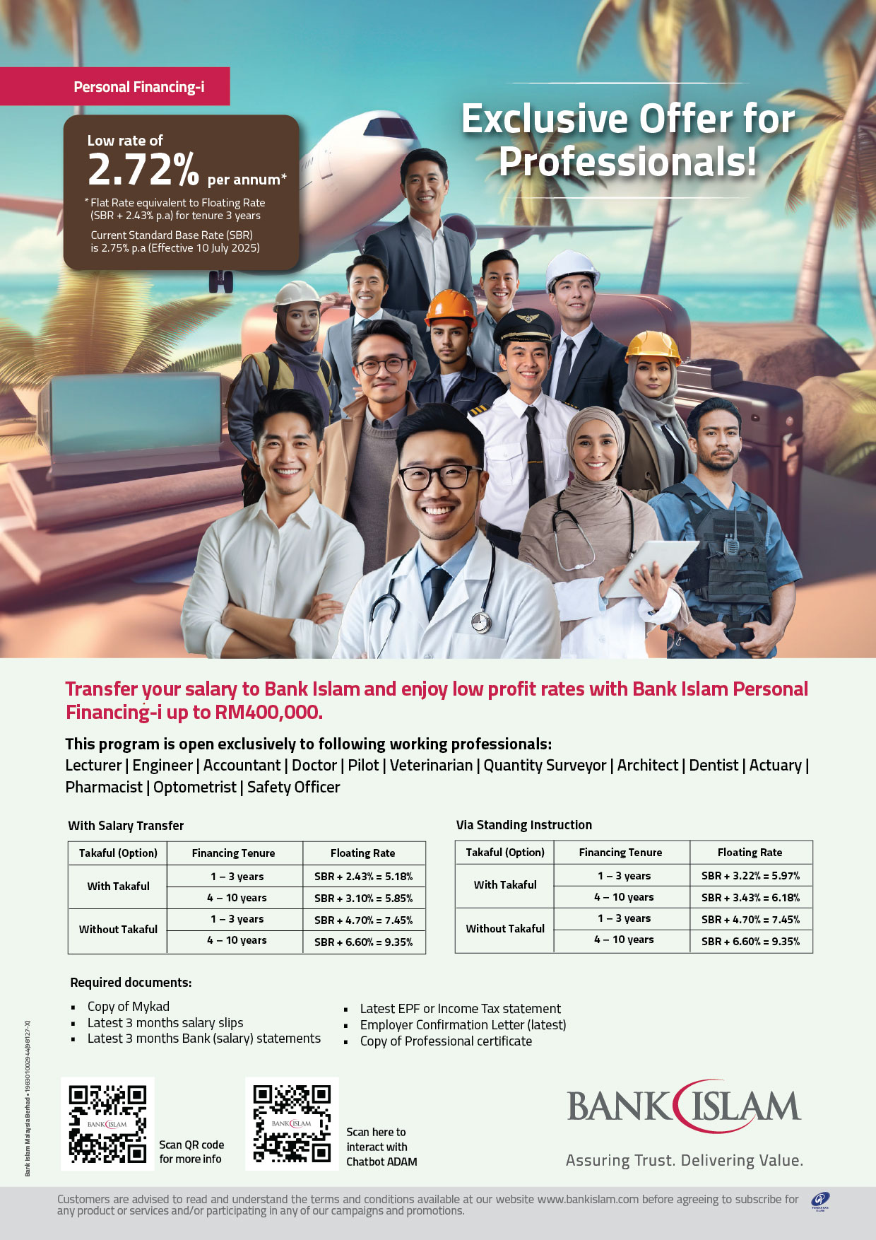 Bank Islam ada solusi untuk pengurusan kewangan yang bijak. Khas bagi golongan profesional, nimati kadar rendah Pembiayaan Peribadi-i Bank Islam sekarang.